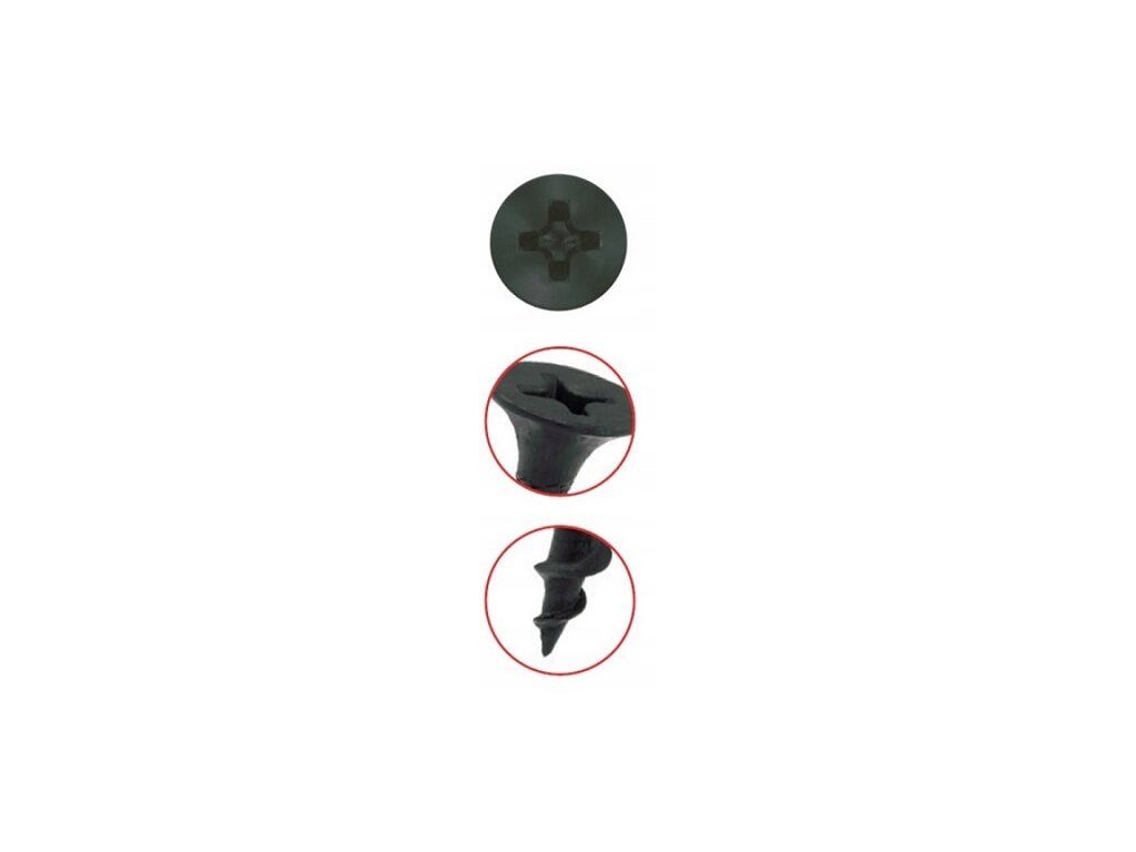 Vyrobené sú z nízkouhlíkovej ocele s fosfátovou úpravou. Skrutky majú zápustnú hlavu, ktorá zaisťuje zarovnanie skrutky v inštalovanom prvku. Konštrukcia závitu zaručuje spoľahlivé a trvanlivé upevnenie na drevo a výrobky na báze dreva. Jeho ostrý hrot umožňuje rýchlu inštaláciu.