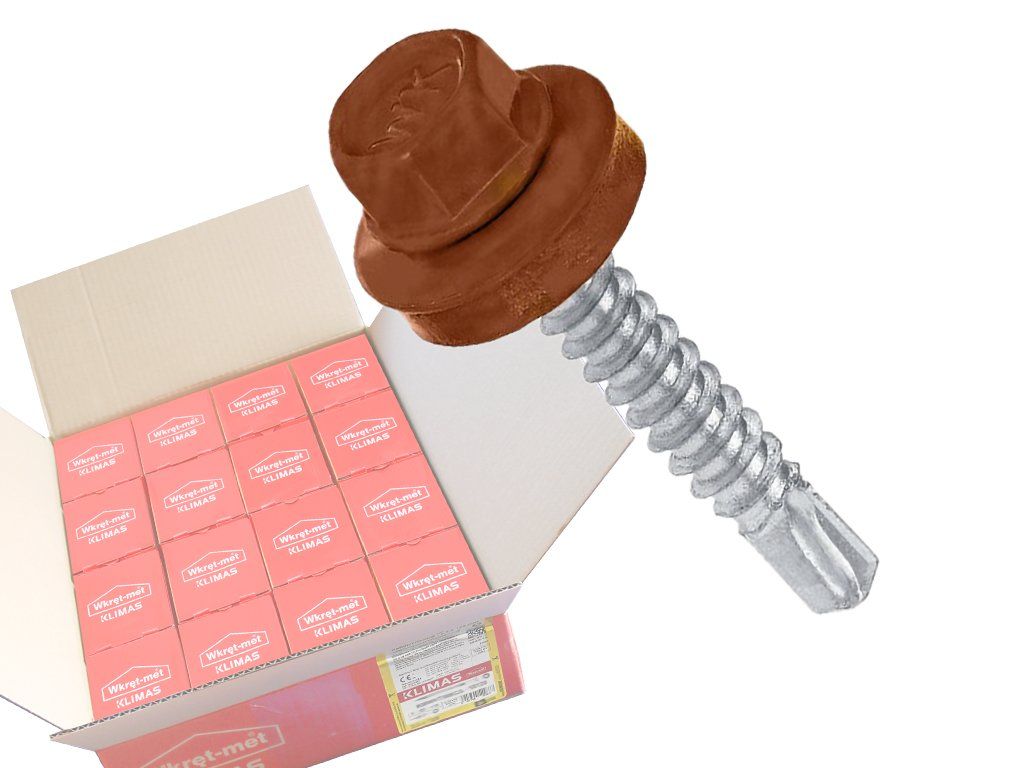 Strešné skrutky renomovanej firmy Klimas Wkręt-met s INOVATÍVNYM DIZAJNOM sú bežne známe ako farmery alebo skrutky do plechu, sú typom špeciálnych spojovacích prvkov používaných na pripevnenie oceľových strešných krytín k dreveným konštrukciám. Skrutky do plechu a plechová krytina tvoria nerozlučnú dvojicu a zaručujú bezpečnosť a funkčnosť strešnej krytiny. Sú vyhotovené vo farebnej škále RAL, tak si jednoducho nájdete presnú farbu podľa vašej farby plechu.