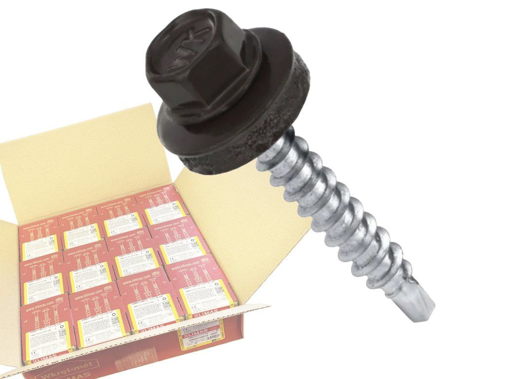 Strešné skrutky renomovanej firmy Klimas Wkręt-met s INOVATÍVNYM DIZAJNOM sú bežne známe ako farmery alebo skrutky do plechu, sú typom špeciálnych spojovacích prvkov používaných na pripevnenie oceľových strešných krytín k dreveným konštrukciám. Skrutky do plechu a plechová krytina tvoria nerozlučnú dvojicu a zaručujú bezpečnosť a funkčnosť strešnej krytiny. Sú vyhotovené vo farebnej škále RAL, tak si jednoducho nájdete presnú farbu podľa vašej farby plechu.