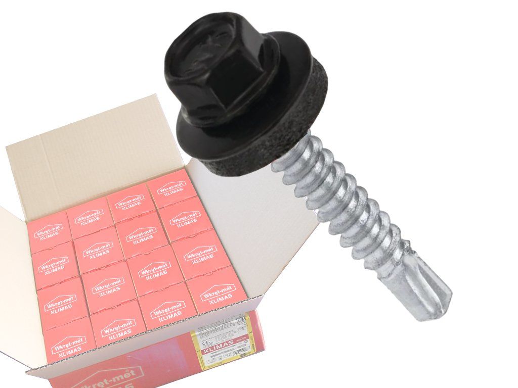 Strešné skrutky renomovanej firmy Klimas Wkręt-met s INOVATÍVNYM DIZAJNOM sú bežne známe ako farmery alebo skrutky do plechu, sú typom špeciálnych spojovacích prvkov používaných na pripevnenie oceľových strešných krytín k dreveným konštrukciám. Skrutky do plechu a plechová krytina tvoria nerozlučnú dvojicu a zaručujú bezpečnosť a funkčnosť strešnej krytiny. Sú vyhotovené vo farebnej škále RAL, tak si jednoducho nájdete presnú farbu podľa vašej farby plechu.