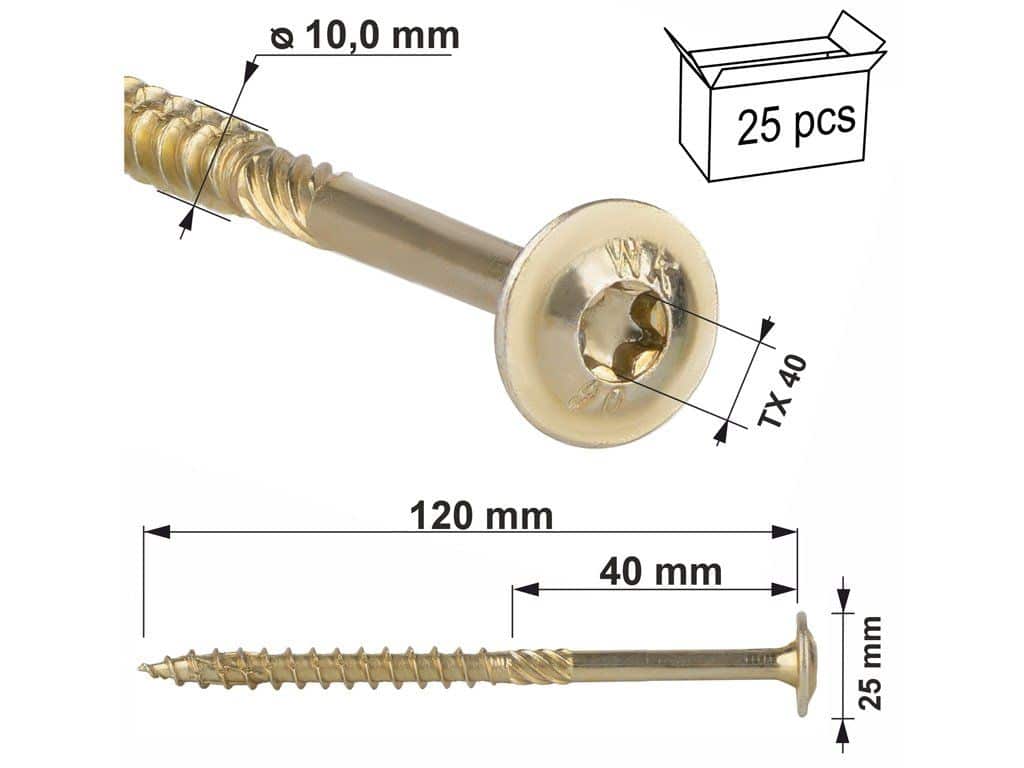TX 10x120mm – 25 ks – Skrutky / Vruty do dreva s tanierovou hlavou, WKCP