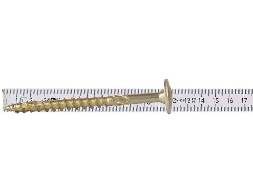 Sú vyrobené z nízko uhlíkovej ocele s ochrannou vrstvou žltého zinku a špeciálnym voskovým náterom. Vďaka špeciálnemu voskovému náteru sa výrazne znížil krútiaci moment pri skrutkovaní. Montáž je tým pádom rýchlejšia a jednoduchšia čo taktiež predlžuje životnosť akumulátorového náradia. Používajú sa na spájanie drevených konštrukčných prvkov. Tesárske konštrukčné vruty majú tanierovú hlavu s hlavičkou typu TORX a novým, zdokonaleným frézovacím hrotom.