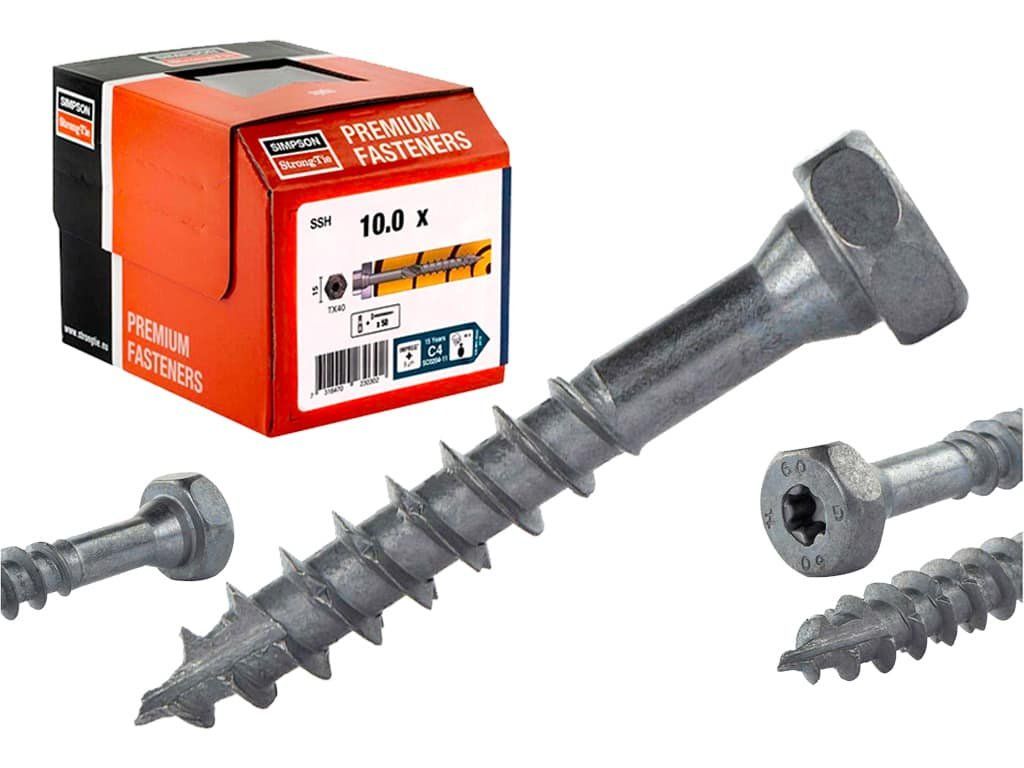 Skrutky renomovanej firmy Simpson Strong-Tie s hniezdom TORX pre presné a pevné spájanie tesárskych kovaní s drevom.