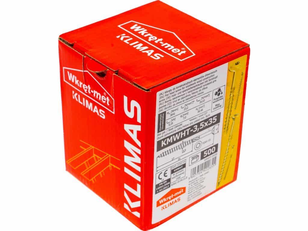 Skrutky renomovanej firmy Klimas Wkręt-met s INOVATÍVNYM DIZAJNOM, hniezdom TORX pre spájanie drevených konštrukcií a iných prvkov ako napr. DTD dosky, preglejka, drevo, MDF dosky, OSB dosky.