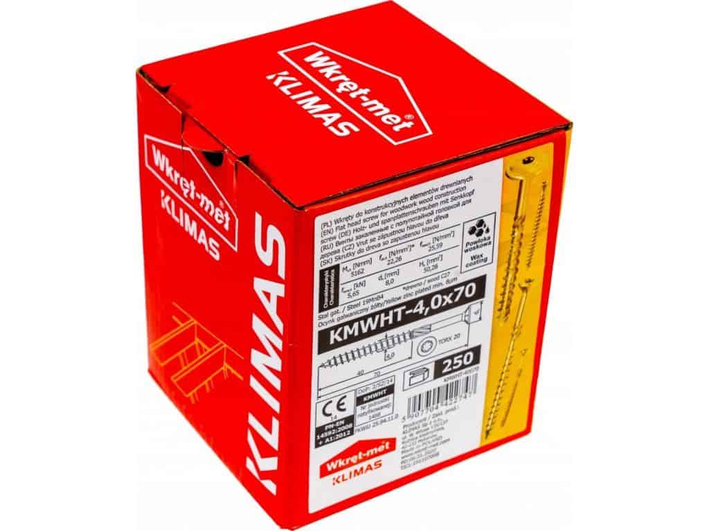 Skrutky renomovanej firmy Klimas Wkręt-met s INOVATÍVNYM DIZAJNOM, hniezdom TORX pre spájanie drevených konštrukcií a iných prvkov ako napr. DTD dosky, preglejka, drevo, MDF dosky, OSB dosky.