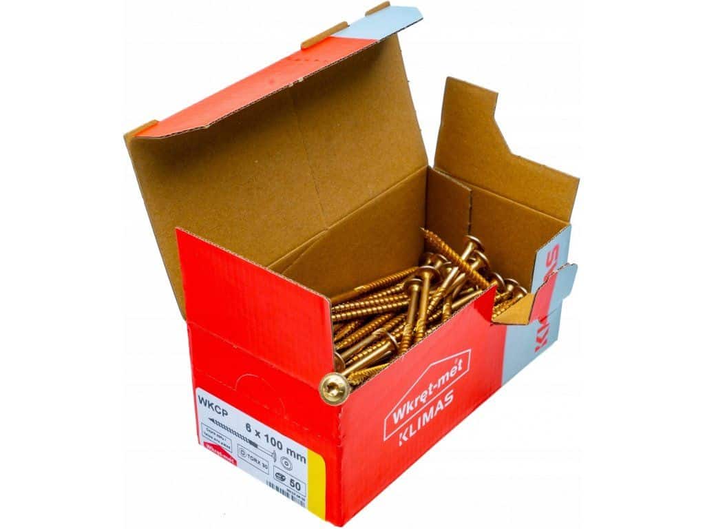 Skrutky renomovanej firmy Klimas Wkręt-met s INOVATÍVNYM DIZAJNOM, hniezdom TORX pre spájanie drevených konštrukcií a iných prvkov ako napr. DTD dosky, preglejka, drevo, MDF dosky, OSB dosky.