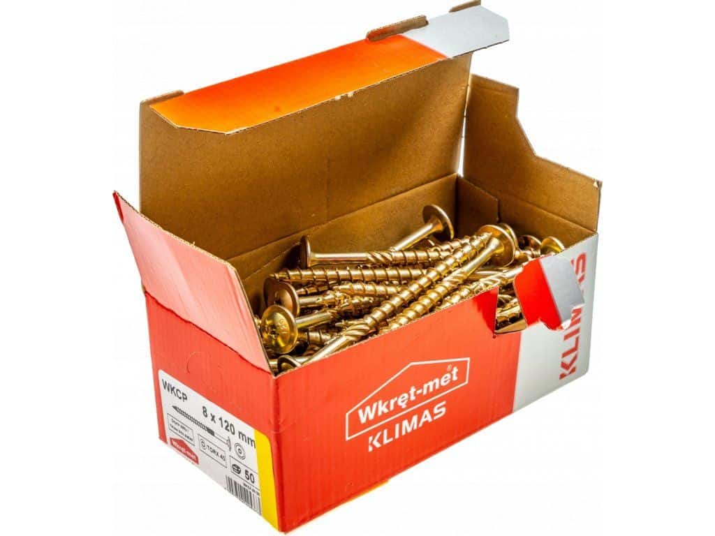 Skrutky renomovanej firmy Klimas Wkręt-met s INOVATÍVNYM DIZAJNOM, hniezdom TORX pre spájanie drevených konštrukcií a iných prvkov ako napr. DTD dosky, preglejka, drevo, MDF dosky, OSB dosky.