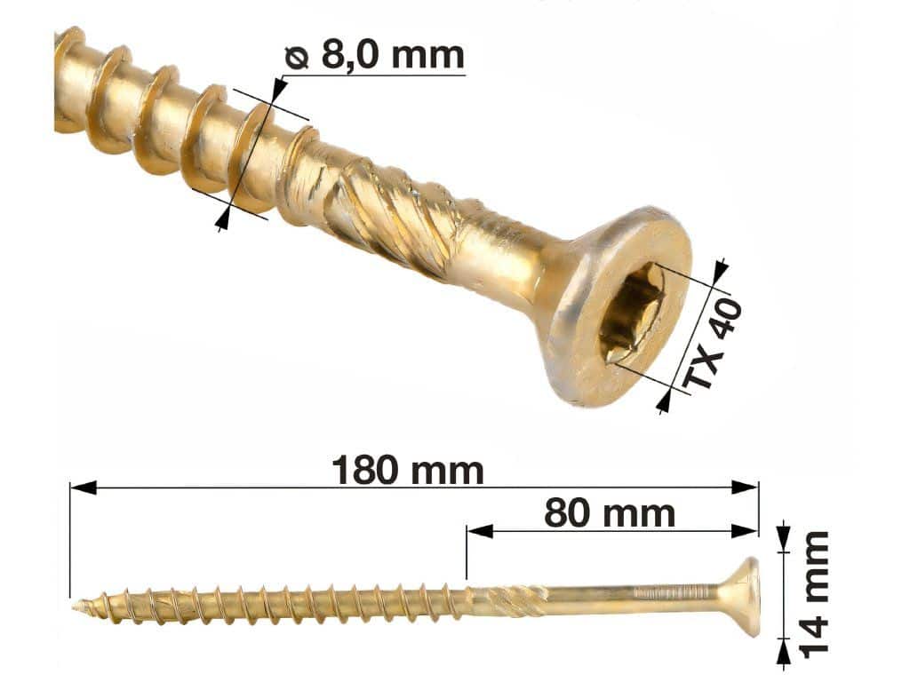 TX 8x180mm – 50 ks – Skrutky / Vruty do dreva so zapustenou hlavou, WKCS