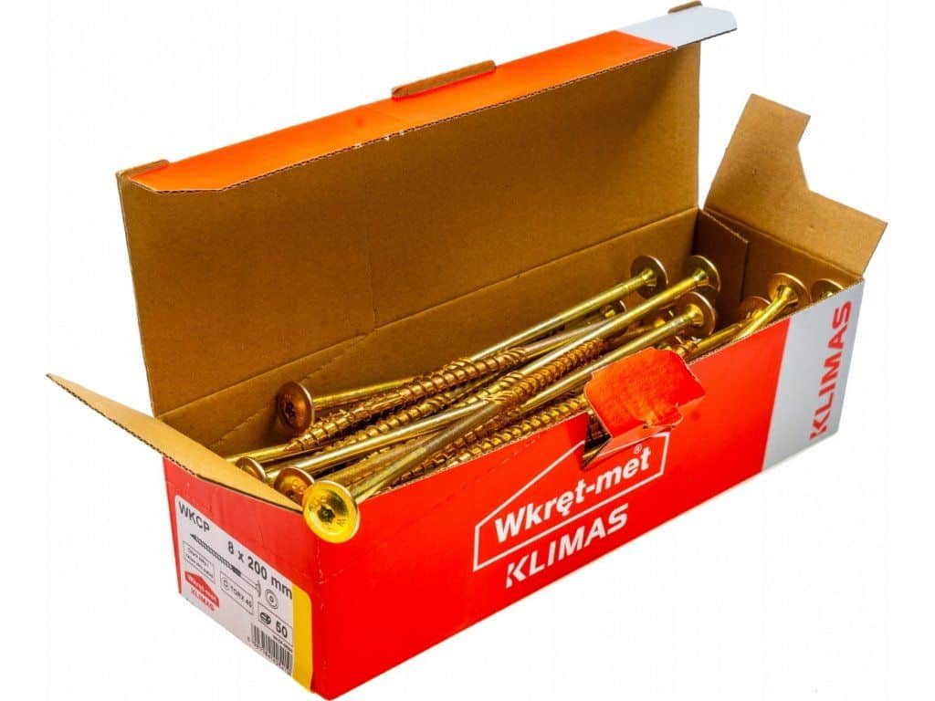 Skrutky renomovanej firmy Klimas Wkręt-met s INOVATÍVNYM DIZAJNOM, hniezdom TORX pre spájanie drevených konštrukcií a iných prvkov ako napr. DTD dosky, preglejka, drevo, MDF dosky, OSB dosky.