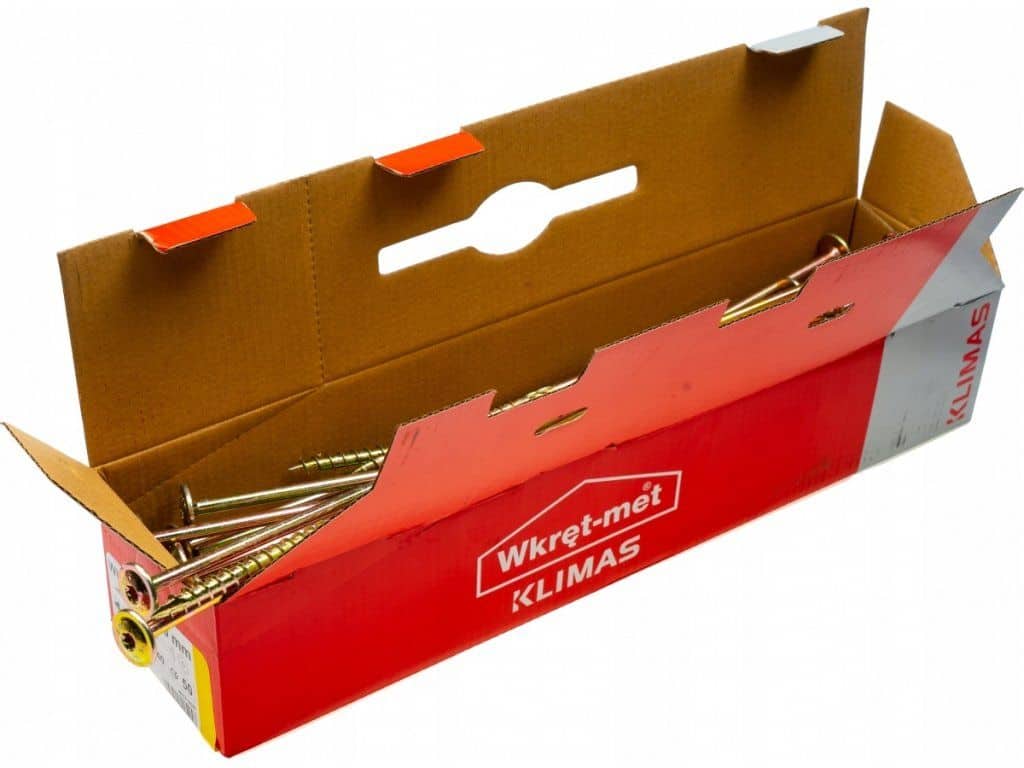 Skrutky renomovanej firmy Klimas Wkręt-met s INOVATÍVNYM DIZAJNOM, hniezdom TORX pre spájanie drevených konštrukcií a iných prvkov ako napr. DTD dosky, preglejka, drevo, MDF dosky, OSB dosky.