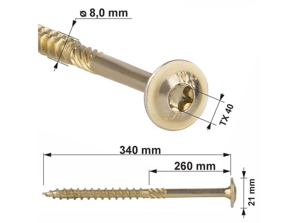 Konštrukčné skrutky do dreva TX 8x340mm