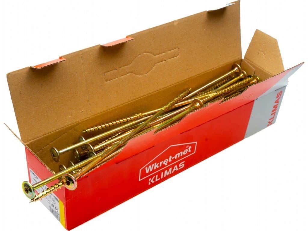 Skrutky renomovanej firmy Klimas Wkręt-met s INOVATÍVNYM DIZAJNOM, hniezdom TORX pre spájanie drevených konštrukcií a iných prvkov ako napr. DTD dosky, preglejka, drevo, MDF dosky, OSB dosky.