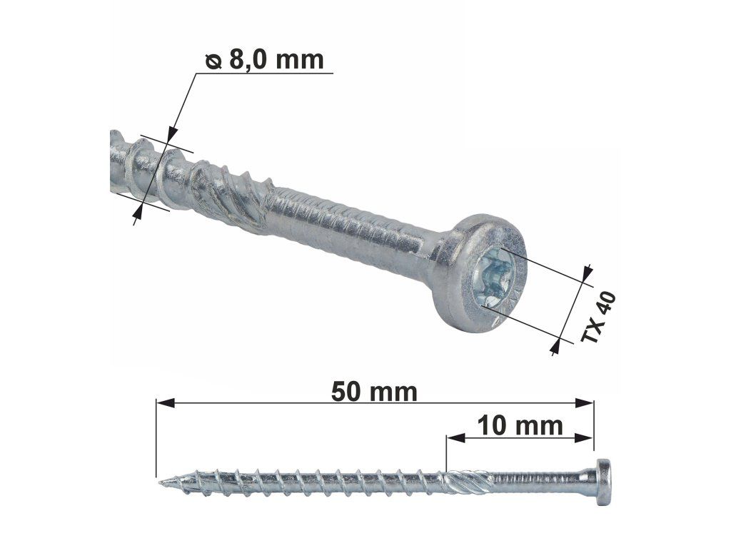 TX 8x50mm – 50 ks – Skrutky pre tesárske kovanie, WKCR