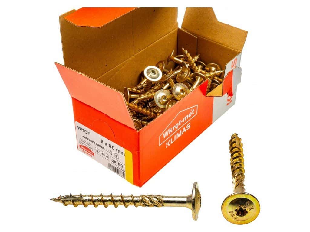Skrutky renomovanej firmy Klimas Wkręt-met s INOVATÍVNYM DIZAJNOM, hniezdom TORX pre spájanie drevených konštrukcií a iných prvkov ako napr. DTD dosky, preglejka, drevo, MDF dosky, OSB dosky.